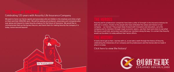 該網(wǎng)站由兩種原色做了一個(gè)可愛的以英雄為主題的插圖背景。雖然占主導(dǎo)地位的紅色有點(diǎn)咄咄逼人的味道,但與白色字體的搭配更突顯了內(nèi)容的重要。