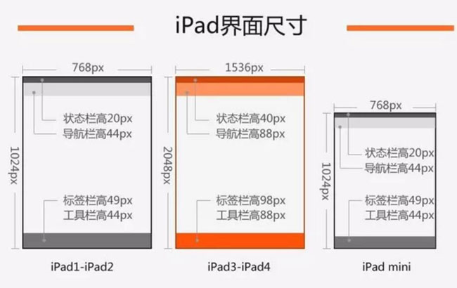 其中ipad1、ipad2、ipad mini均已淘汰,在制作網(wǎng)站布局時已基本可以不再考慮這些分辨率的產(chǎn)品了。